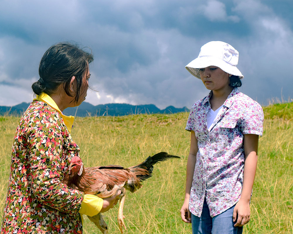 In need of money for an operation, Lilian comes home and asks her mother for money. After receiving a scolding from her mother, she steals her mother’s rooster. Her mother frantically searches for her lost rooster until she finds it on the hill with Lilian standing beside it. The daughter confesses her real situation and unexpectedly receives the reassurance that she never would have thought of earlier.